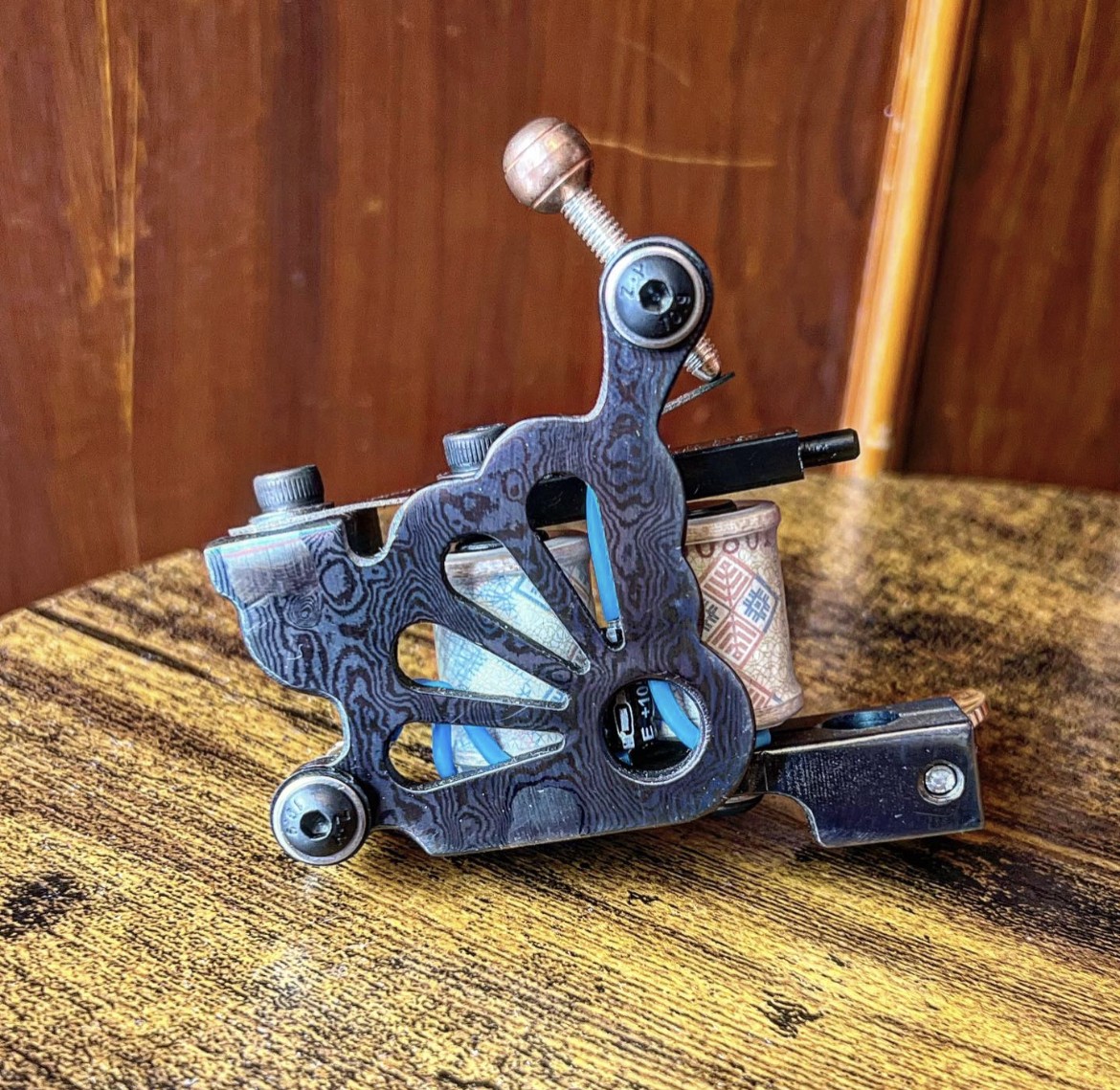 La Baker McKeever en Acier de Damas repousse les limites de l'artisanat avec son châssis basé sur le classique de LL McKeever, apportant une esthétique unique et une performance exceptionnelle à votre arsenal de tatouage. Chaque détail de cette machine est une célébration de l'ingénierie de précision et de l'art du tatouage.